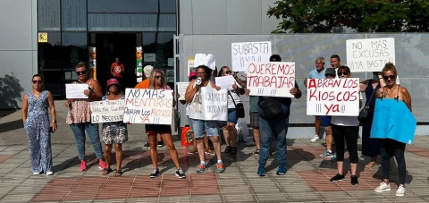 Las trabajadoras de los quioscos de las Playas del Inglés, Maspalomas y El Faro han realizado hoy su tercera jornada de protestas, al no recibir respuesta del gobierno municipal, frente a las Oficinas Municipales del ayuntamiento de San Bartolomé de Tiirajana. Ante la falta de ingresos, los hamaqueros se han solidarizado con las trabajadoras y han hecho una colecta de dinero para ayudarlas.