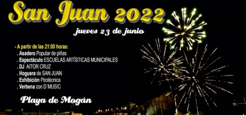 Este jueves 23 de junio la playa de Mogán acogerá la celebración de una de las noches más mágicas del año, San Juan. La velada organizada por el Ayuntamiento de Mogán contará con un asadero popular de piñas, espectáculo de teatro y danza, música con el DJ Aitor Cruz, fuegos artificiales, una gran hoguera y verbena.