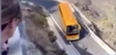 Una guagua quedó atravesada en la carretera de subida a Fataga en la mañana de este miércoles. Los pasajeros tuvieron que bajarse del vehículo.