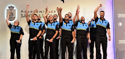 La Policía Local de Santa Lucía deTirajana cuenta con once nuevos agentes que tomaron posesión de sus cargos la noche de este viernes en un acto institucional que tuvo lugar en el Centro Cultural El Cine de Sardina. Cerca de doscientos invitados e invistadas, entre los que estaban familiares y amigos de los nuevos agentes y representantes de fuerzas y cuerpos de seguridad de otros municipio, asistieron al acto de la XXI Promoción de la Policía Local de Santa Lucía de Tirajana. Hace 14 años entró la última promoción de policías locales en el municipio del sureste grancanario.