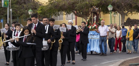 La procesión empezó poco antes de las 20:00 horas tras oficiarse la tradicional misa en decoro a la patrona en la ermita de Motor Grande. Después de la homilía, petardos anunciaron la salida de la imagen de María Auxiliadora a la que acompañaron decenas de vecinos y vecinas por las calles del barrio, entre los que se encontraba la alcaldesa de Mogán, Onalia Bueno, y concejales de la Corporación municipal.