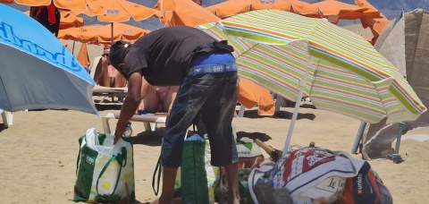 La venta ambulante prolifera en las playas de El Inglés y Maspalomas. Mientras los quioscos permanecen cerrados desde hace más de dos años y medio, personas sin ningún tipo de permiso y seguro ven una oportunidad para vender todo tipo de alimentos a los cientos de bañistas que a diario dan cita en las costas del sur grancanario.