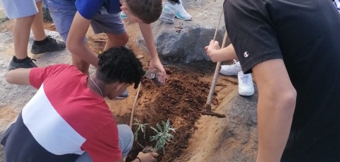 Alumnado del Ciclo Formativo Básico de Administrativo, del IES Tamara, realizó recientemente una plantación de especies endémicas de las costas de Canarias en el Parque Tony Gallardo de Maspalomas.