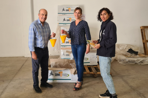 La campaña consiste en la entrega gratuita de trampas-mosqueros a los productores de fruta, tras una charla sobre sus efectos, la instalación y uso.