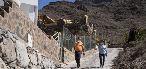 Mogán ha invertido 42.000 euros de fondos propios para dotar de red de saneamiento a seis viviendas del barrio de Las Casillas, en el Barranco de Mogán. La alcaldesa, Onalia Bueno, y el concejal de Obras Públicas, Ernesto Hernández han girado una visita a la zona.