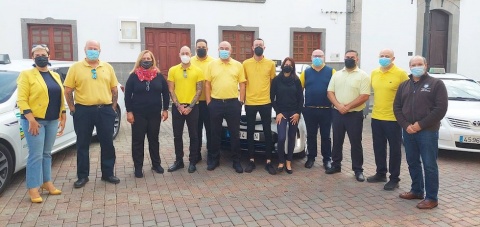 La alcaldesa de la Villa de Ingenio, Ana Hernández, y el concejal de Movilidad, Domingo González, presentaron este jueves la nueva imagen corporativa en la plaza del Buen Suceso de Carrizal, junto a taxistas y representantes de las asociaciones del sector en el municipio.