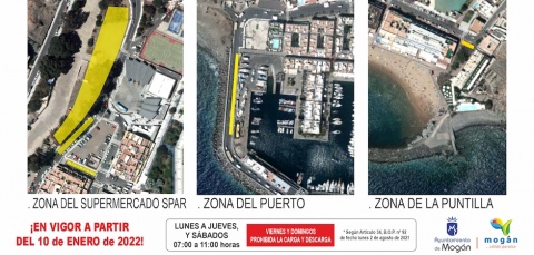 El barrio marinero de Playa de Mogán dispondrá exclusivamente de tres zonas para el servicio de carga y descarga de mercancías así como de un horario concreto para llevarlo a cabo, que será de lunes a jueves y los sábados, de las 7:00 a las 11:00 horas. Tanto los emplazamientos como los días y horas deberán respetarse desde el lunes 10 de enero y han sido consensuados entre el Ayuntamiento de Mogán y los empresarios de la zona con la finalidad de evitar problemas de tráfico y la saturación de este núcleo residencial y turístico con los vehículos de transporte de mercancías.