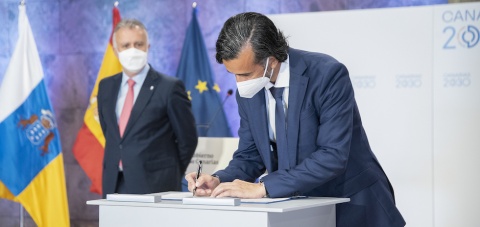 El concejal de Presidencia, Antonio Pérez, en representación del Ayuntamiento de San Bartolomé de Tirajana, ha acudido hoy al acto institucional de la firma del Plan Estatal de Vivienda del 2018 al 2021 que se ha llevado a cabo en Tenerife. La firma del acuerdo se centra en la financiación para la realización conjunta de las obras de rehabilitación en edificios y viviendas, reurbanización de espacios públicos y demás aspectos específicos del Área de Regeneración y Renovación Urbana Las Llaves Fase II en San Bartolomé de Tirajana, en el marco del Real Decreto de 9 de marzo, por el que se regula el Plan Estatal de Vivienda 2018-2021.