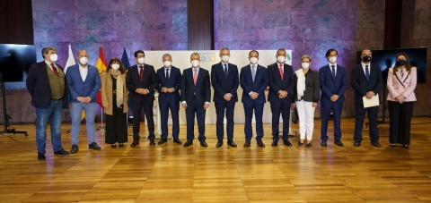 La vicepresidenta del Consorcio de Viviendas, Conchi Monzón, acudió hoy a la firma de los convenios para las actuaciones de rehabilitación y regeneración urbana y rural (ARRU), junto al secretario general de Agenda Urbana y Vivienda, David Lucas, el presidente del Gobierno de Canarias, Angel Victor Torres, y los alcaldes y alcaldesas de los municipios.
