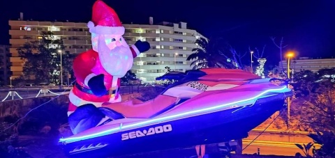 Se hizo esperar, pero finalmente Papa Noel llegó. Viajó directamente desde Laponia para colarse en la rotonda de la Viuda de Franco y montarse nada más y nada menos que en la moto acuática que durante una semana ha creado mucha expectación. Muchos se preguntaban como una moto acuática se había colado en la rotonda sin ser vista y haber sido abandonada como tantos desperdicios fuera del Punto Limpio.