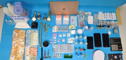 El arrestado vendía sustancias estupefacientes desde su domicilio a numerosas personas que acudían al lugar. En el registro realizado en su vivienda le fueron incautados 153 gramos de cocaína, 562 gramos de éxtasis líquido, 3,1 gramos de mefedrona, 2,1 gramos de ketamina, anabolizantes, 1.385 euros en efectivo, tres teléfonos móviles, un portátil dos básculas de precisión, joyas y relojes.