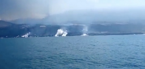 La lava que en ese nuevo punto ha alcanzado el mar este lunes proviene del derrame que discurría por la fajana de 1949 en la zona más al norte, casi pegada al delta lávico que ha sepultado la playa de los Guirres.