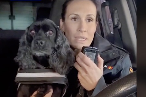 En las imágenes se ve al animal con Irene, su guía canina encargada de entrenarla y acompañarla en las actividades especiales, en el coche policial. Entonces, la mujer informa por radio de que ha finalizado el turno del último servicio de Lluna.