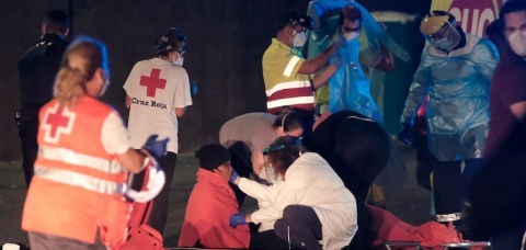 A su llegada al muelle de Arguineguín, seis miembros de esta expedición han sido evacuados a los hospitales Insular y Negrín por presentar heridas de diversa consideración.