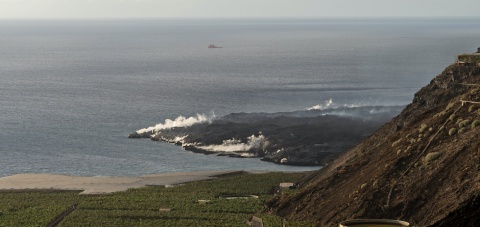La reactivación de la colada que discurre de norte a oeste tras desbordarse el lago de lava del volcán de Cumbre Vieja ha provocado que el flujo de magma se sitúe a unos 300 metros del mar, y puede llegar a formar otro delta lávico o fajana en la playa de Perdido en La Palma.