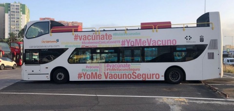 La vacuguagua del Servicio Canario de la Salud, puesta en marcha en colaboración con la empresa CitySightseeing de Las Palmas de Gran Canaria llega este martes, 24 de agosto a Maspalomas para fomentar la vacunación contra la COVID-19 entre la población de más de 12 años (ya cumplidos).