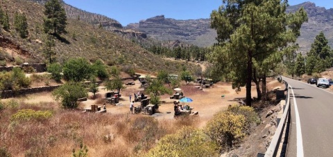 Pero lo más impresionante viene cuando llegamos al “Merendero de Los Almendros” en la vista de Fataga y barranco de Tobas, merendero propiedad del ayuntamiento de San Bartolomé de Tirajana, rodeado a pinares y almendros sin podar y llenos de yerbas y matorrales secos, donde las familias disfrutan de asaderos y un día de campo fuera de la ciudad.