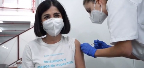 La ministra de Sanidad, Carolina Darias, ha recibido este sábado la primera dosis de la vacuna contra la Covid-19, según ha informado ella misma en un vídeo colgado en su cuenta personal de Twitter. Después de visitar la Fundación Canaria Yrichen, en Telde, Darias ha acudido al centro de vacunación masiva de Infecar, en la capital grancanaria, donde le han administrado el suero.