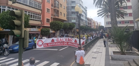 La plataforma Salvar Chira-Soria ha congregado, según sus cálculos, a más de 5.000 personas en la manifestación que se ha celebrado este sábado en Las Palmas de Gran Canaria para expresar su oposición a la construcción del Salto de Chira en el barranco de Arguineguín y para reclamar un nuevo modelo energético.