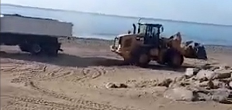 “Suma y sigue…este es el cuento que nunca acaba”…Así comienza un nuevo vídeo del joven Iván Monagas (@ivanmonagas) en el que muestra a maquinaria pesada moviendo piedras, esta vez en la playa de Las Burras.