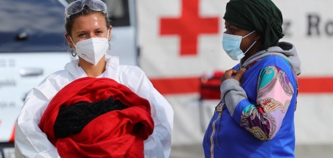 Poco antes de las 10.00, este buque de rescate llegaba al puerto de Arguineguín (Gran Canaria) con los 45 inmigrantes subsaharianos y magrebíes a los que había recogido media hora antes a once kilómetros al este de la playa del Águila, entre ellos un bebé recién nacido, que vino al mundo anoche, durante la travesía.