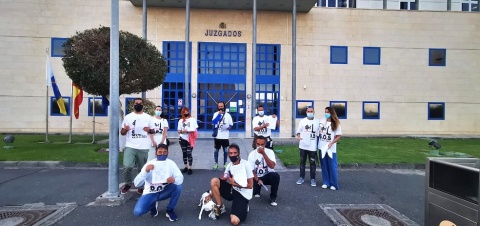 El colectivo "Hagámonos Oir Maspalomas" se ha personalizado este jueves en los Juzgados de San Bartolomé de Tirajana para denunciar la “obra de una escollera” de protección del Centro Comercial Oasis en la playa de Maspalomas.