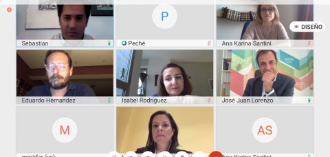 Yaiza Castilla estuvo acompañada por el gerente de Turismo de Islas Canarias, José Juan Lorenzo, y ambos mantuvieron un encuentro telemático con la vicepresidenta asociada de Desarrollo en Destino de Royal Caribbean,Ana Karina Santini; la directora de Comunicación de RC; Isabel Rodríguez,: el director internacional de Producto ySostenibilidad de RC; Sebastian Mariz.