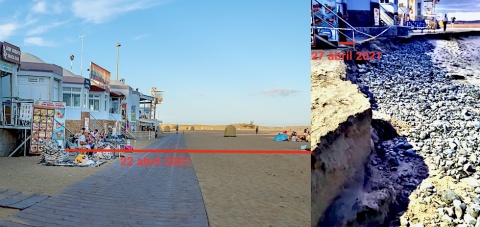 La fuerza del mar ha vuelto ha arrastrar arena y piedras hasta prácticamente arrasar el paseo comercial junto al Faro de Maspalomas. Se repite así la escena de este lunes, en el que la pleamar más alta vuelve a afectar el paseo de madera y parte de la escollera reforzada la pasada semana por parte del Ayuntamiento de San Bartolomé de Tirajana, movimientos que están siendo investigados por Costas.