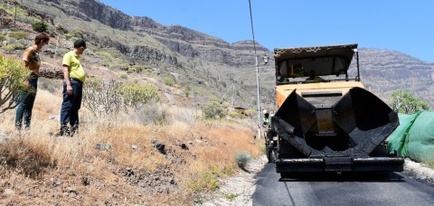 La alcaldesa de Mogán, Onalia Bueno, y ediles del grupo de Gobierno, han visitado las obras de asfaltado que se están llevando a cabo en Las Filipinas, en el Barranco de Arguineguin. También en este barrio se han edificado 80 metros lineales de muro de contención e instalado vallado de seguridad vial.
