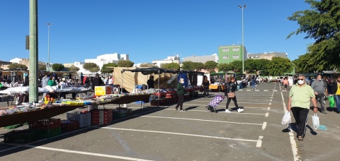 Más de cien puestos de verduras, fruta, comida, productos textiles y de electrónica volvieron a instalarse este miércoles en los aparcamientos del recinto ferial de vecindario. Tras la bajada del nivel de alerta de 3 a nivel 2, el Ayuntamiento decidió volver a autorizar la celebración del mercado de las frutas de los lunes y el mercado de los miércoles en el recinto ferial, también se pueden abrir el mercado de la karpa cada 15 días y el mercadillo en Santa Lucía casco.