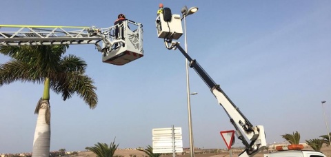 Los bomberos de San Bartolomé de Tirajana han rescatado este miércoles a un electricista del Ayuntamiento al que se le quedó bloqueada la grúa a gran altura mientras reparaba el alumbrado municipal en San Fernando de Maspalomas.