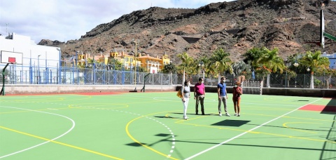 El Ayuntamiento de Mogán ha invertido 32.000 euros en la rehabilitación de la cancha polideportiva de Playa de Mogán, que presentaba grietas y separaciones en el suelo. La alcaldesa de Mogán, Onalia Bueno, comprobó el estado actual de la instalación municipal durante una visita con miembros del grupo de gobierno local.