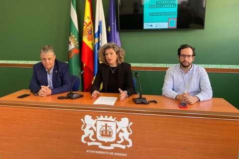 El presidente de la Fundación y consejero de Empleo y Desarrollo Local del Cabildo de Gran Canaria, Juan Díaz; la concejala de Presidencia, Servicios Sociales e Igualdad del Ayuntamiento de Ingenio, Elena Suárez, y el gerente de la Fundación Gran Canaria Accesible, Carlos Carrión, presentaron este miércoles el programa de este año.