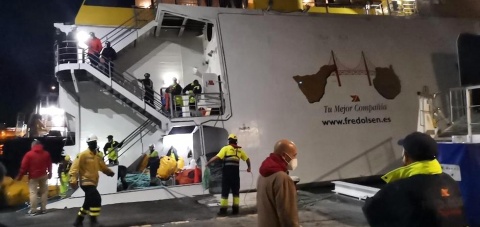 En ese momento, iban a bordo 59 pasajeros y 16 tripulantes, que tuvieron que esperar 15 horas, hasta la mañana siguiente, para que se dieran las condiciones de seguridad adecuadas para que pudieran transbordarlos a un barco de Salvamento Marítimo, que los transportó al muelle, situado a escasos metros de distancia.