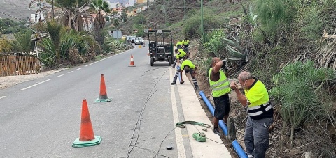 El concejal de Obras Públicas, Ernesto Hernández, ha explicado que se está sustituyendo la canalización principal que conecta el servicio de abastecimiento de agua potable de la parte alta del Barranco de Mogán con la zona de Molino de Viento. “Se van a sustituir unos 300 metros lineales de tuberías de polietileno por otras de material de fundición, que es mucho más resistente y duradero”, ha indicado.
