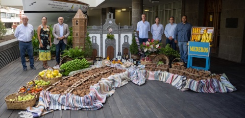 Cuando restan solo dos días para que se celebre en Teror la que se espera una de las más multitudinarias romerías-ofrenda de la historia, coincidiendo con los 70 años que cumple este popular evento que tiene lugar en la Villa Mariana desde el año 1952, el Cabildo de Gran Canaria presentó en la mañana de hoy lunes, el escaparate tradicional alusivo a las Fiestas del Pino, así como una selección de los variados productos manufacturados y agrícolas que portará el día 7 de septiembre en su carreta institucional denominada ‘¡Gran Canaria, isla de tierra y de mar!’, que ha diseñado Fernando Benítez para la ocasión.
