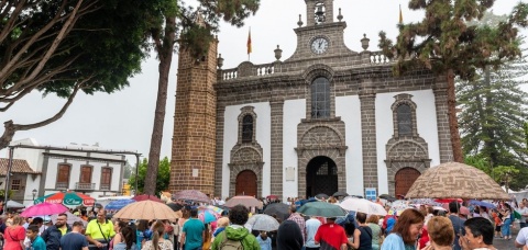 El programa de actos religiosos de las Fiestas del Pino ha dado este jueves su pistoletazo de salida con la tradicional Subida de la Bandera en la Basílica de Teror, que, tras las obras de restauración a las que ha sido sometida, este año espera completamente renovada a las más de 200.000 personas que se estima acudirán al municipio en la primera edición de las fiestas que se celebra sin ningún tipo de restricciones sanitarias, después de dos años de pandemia.