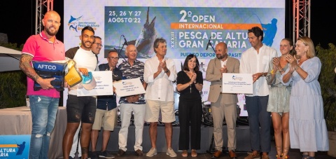 La Ministra de Sanidad, Carolina Darias, participó en el acto de entrega de trofeos, junto al consejero insular de Turismo, Carlos Álamo. Darias dio la enhorabuena a todos los participantes por su concurso y por el ambiente festivo y amable del Open Internacional. El concurso resultó un éxito con hasta once capturas y sueltas del Blue Marlin, (Picudo Azul en español) y un total de 24 ‘picadas’.