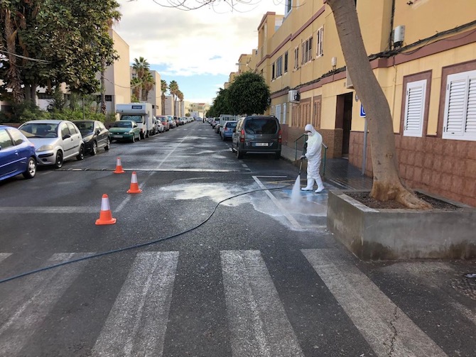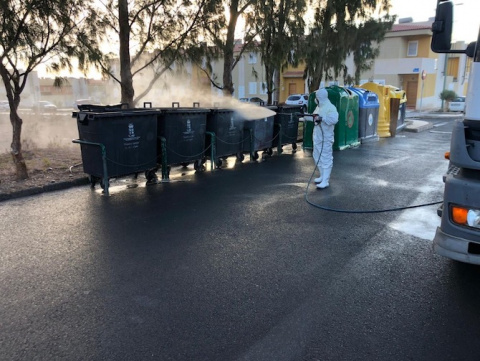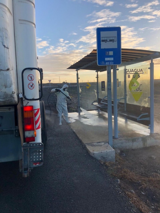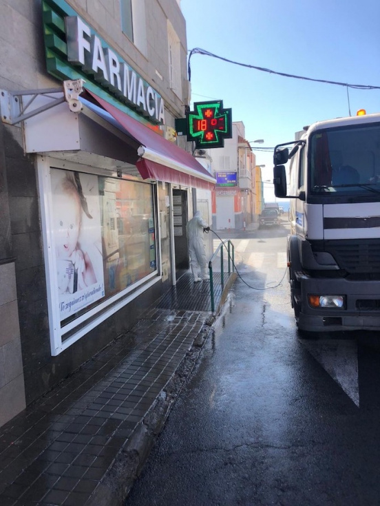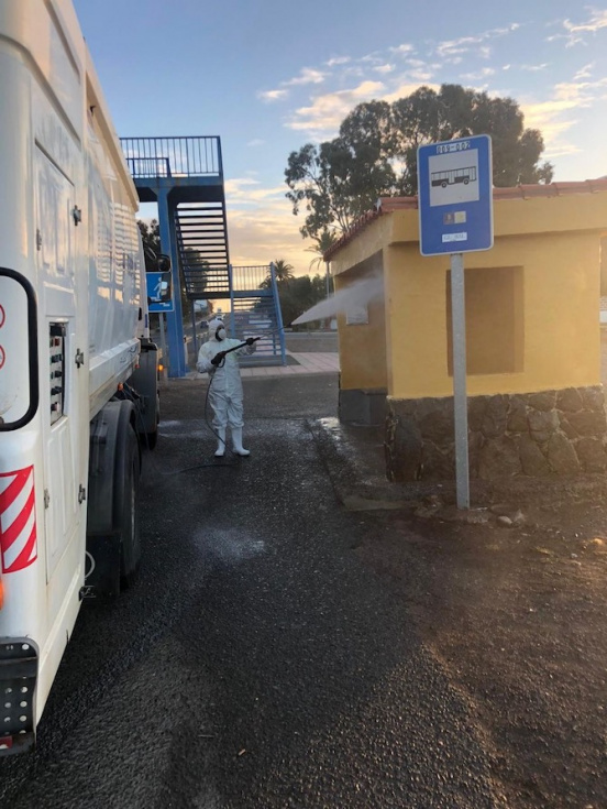 La Concejalía de Limpieza de San Bartolomé de Tirajana ha procedido durante los primeros 15 dias de confinamiento a la desinfección de las zonas sensibles del municipio.