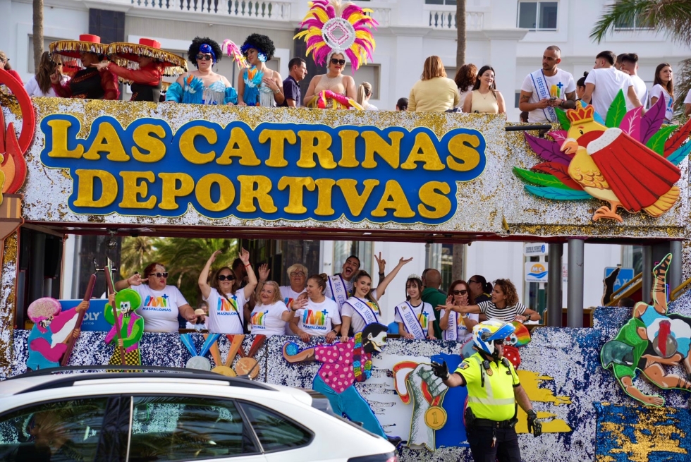 La carroza anunciadora abre el camino al Carnaval Internacional de Maspalomas