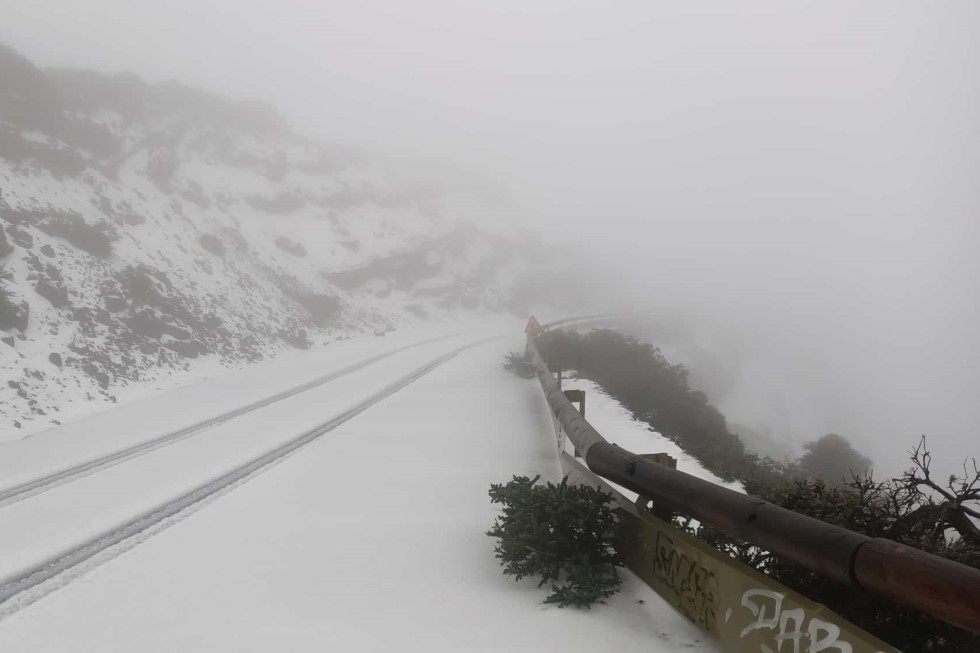 El Cabildo cierra la carretera del Roque de los Muchachos por presencia de nieve